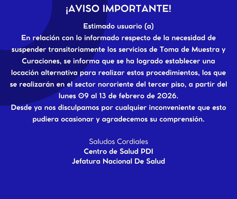 Horario : Lunes a Viernes de 08:00 a 10:00 y de 14:00 a 16:00 Hrs.
